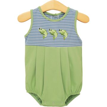 Made for little ones who love playful details, the Hooked on Fishing Bubble brings a classic look with a fun twist. This one piece features a striped bodice accented with three embroidered fish across the chest, adding charm without overwhelming the design. The sleeveless style keeps it comfortable for warm days, while the softly pleated body offers room to move, crawl, and explore. Finished with elastic leg openings and snap closures for easy changes, this bubble is a great choice for everyday wear, outings, and moments that call for something extra cute and practical.
