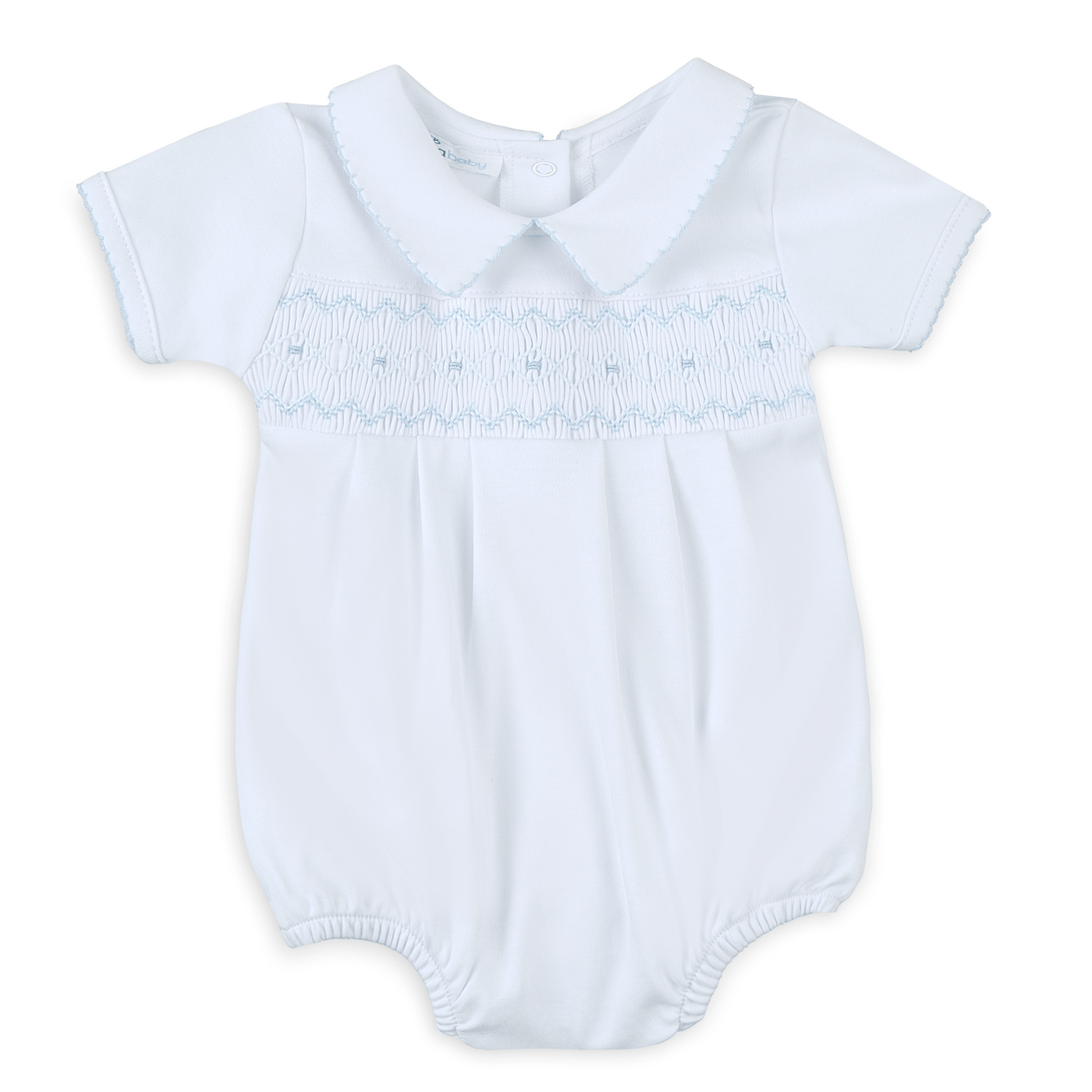 Landon's Classics Smocked Short Sleeve Bubble - Light Blue Sale
