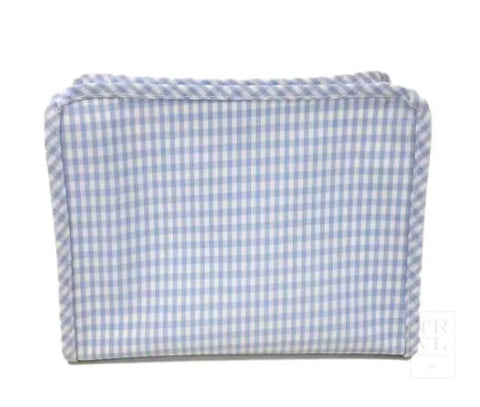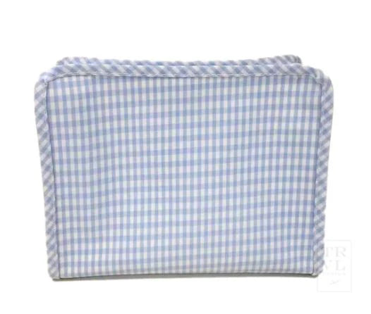 Our best-selling Roadies are our BFFs in the pouch world! Available in 2 sizes, our Roadies are made in a cotton gingham with a thin Eco-friendly matte coating, an inside slip pocket and exterior snap open zip tabs for a wider opening and easier access.