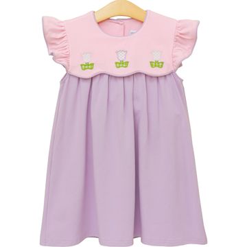 This Freshly Picked Dress features a beautiful tulip pattern in shades of pink and purple. Designed by Trotter Street Kids, it is perfect for any occasion. A sister set is also available in a matching Bubble style. Add some floral flair to your little one's wardrobe.