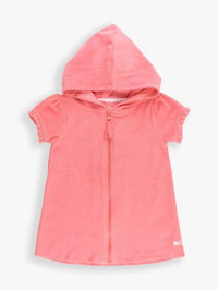 The bubblegum pink color is a fun and vibrant choice that will stand out at the beach or pool. This cover-up is designed with a full-zip closure, making it easy for your child to wear and remove as needed. It's perfect for seasonal wear, especially during those sunny days when sun protection is essential.