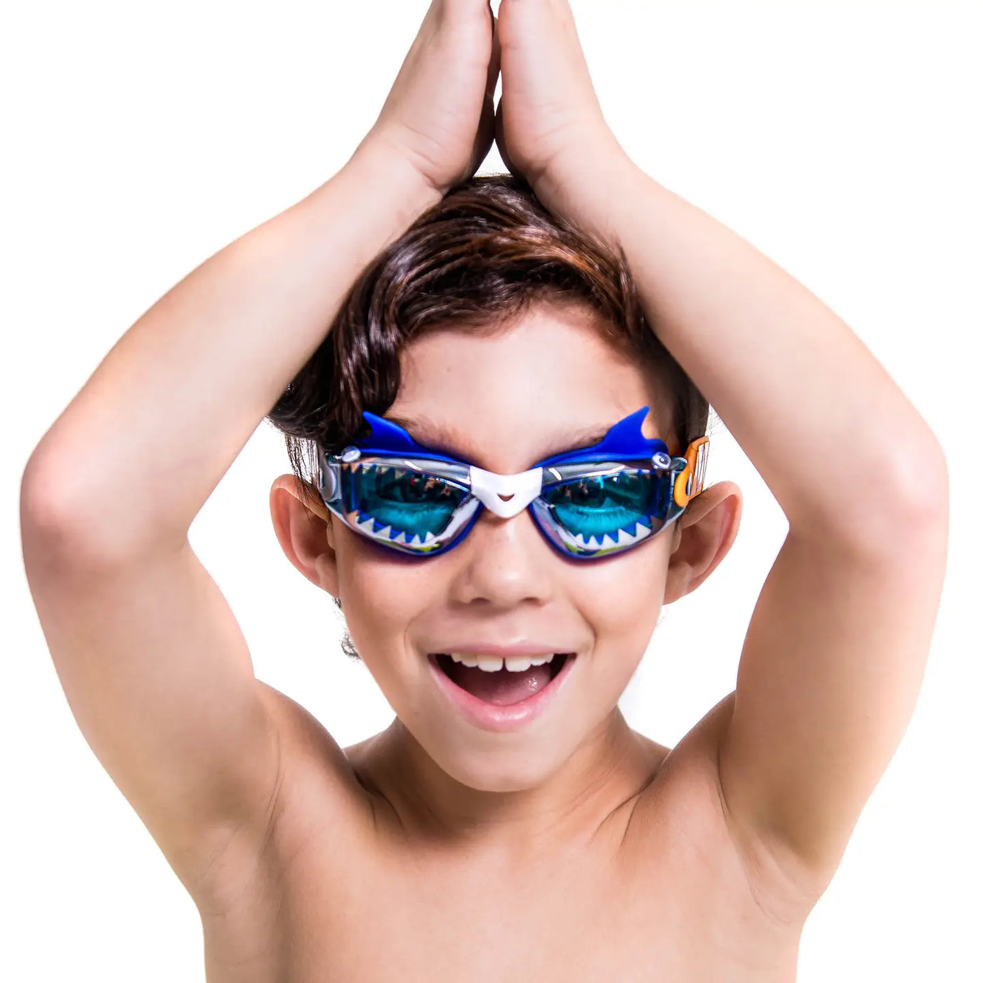 Make a fierce splash with Jawsome Small Bite, Bling2o’s shark-themed kids' swim goggles! Featuring a full lens with shark teeth graphics, playful shark fin gaskets, and fun googly-eyed side accents, these goggles are perfect for adventurous young swimmers. The easy back clip provides a tangle-free, hassle-free fit, ensuring comfort and style in the water. Equipped with anti-fog lenses and UV protection, these goggles offer both safety and clear vision during swim sessions. Ideal for kids aged 3 years and up, these goggles are a fun and functional addition to any pool day or beach adventure.